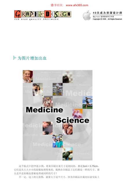 为图片增加出血 ιٳཚഠ XXX BGY DPN 页码,1/5 为图片增加出血 这个版式中的11张小图,将来印刷出来尺寸是相同的,都是3cm×3.75cm。 它们是从大大小小的原稿处理得来的,既然在印刷品上它们都是一样的尺寸,那 么是不是原稿也要被处理成同样的尺寸? 不一定。边上的几张图,就要大于这个尺寸,因为印刷品在裁切以前实际上 https://www.antssoft.com/5-10.htm 2009-5-9