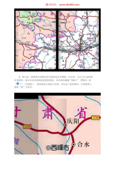 分块扫描和拼接 ιٳཚഠ XXX BGY DPN 页码,2/4 2、将左边一块图所在的图层的不透明度改为75%,向右拉,当它与右边的图 有重叠时,便可以同时看到两张图的情况。多次按快捷键“Ctrl +”(PC机)或 “ +”(苹果机),将画面放大到很大比例,再拉动上面的图层,让两张图上 端的“肃”字重合。 https://www.antssoft.com/5-11.htm 2009-5-9