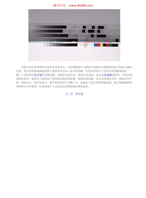 位置、将打样折叠成成品的样子来检查印后加工是否有问题,在打样和胶片上有没有缺笔断划的问