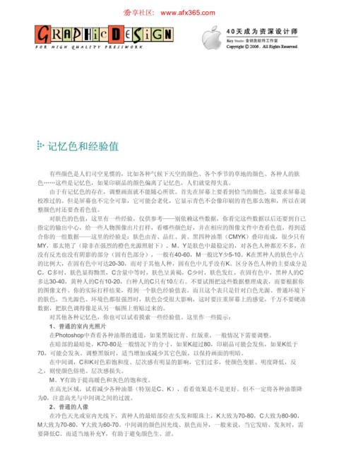色……这些是记忆色,如果印刷品的颜色偏离了记忆色,人们就觉得失真。