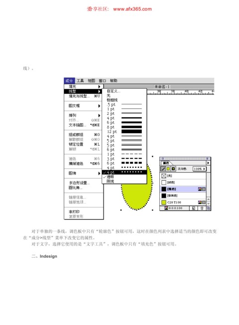 定义颜色,填充和描边 ιٳཚഠ XXX BGY DPN 页码,3/8 线)。 对于单独的一条线,调色板中只有“轮廓色”按钮可用,这时在颜色列表中选择适当的颜色即可改变这 在“成分>线型”菜单下改变它的属性。 对于文字,选择它使用的是“文字工具”,调色板中只有“填充色”按钮可用。 二、Indesign https://www.antssoft.com/7-6.htm 2009-5-9