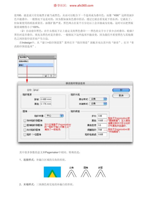 在Indesign中,从“窗口>陷印预设置”菜单打开“陷印预设”面板并双击其中的“缺省”,打开“修