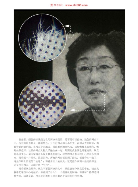 首先看,颜色的深浅是怎么用网点表现的,是不是有深色的、浅色的网点?