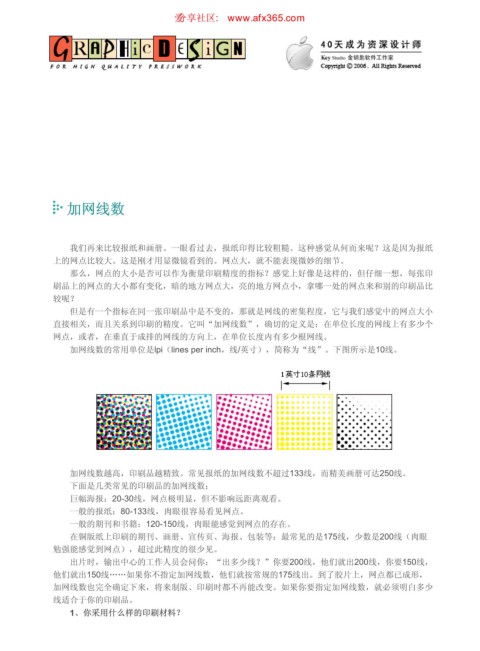 加网线数也完全确定下来,将来制版、印刷时都不再能改变。如果你要指定加网线数,就必须明白多少