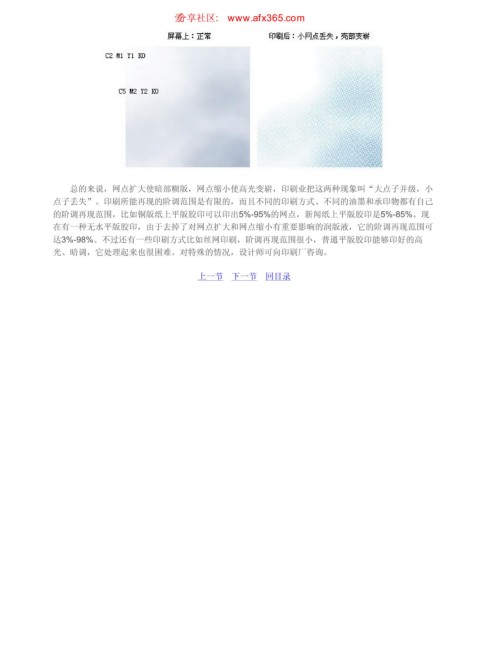点子丢失”。印刷所能再现的阶调范围是有限的,而且不同的印刷方式、不同的油墨和承印物都有自己