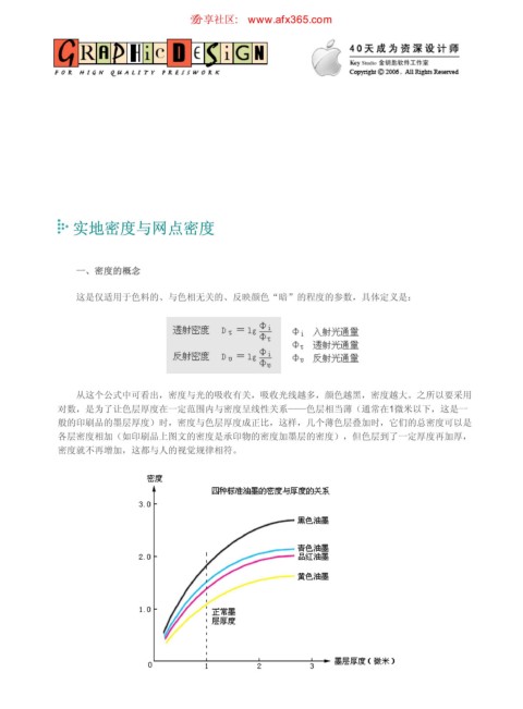 般的印刷品的墨层厚度)时,密度与色层厚度成正比,这样,几个薄色层叠加时,它们的总密度可以是