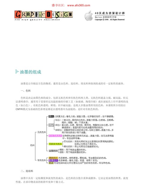 色(如白色)。有机色料透明,鲜艳,但不耐高温,是绝大多数油墨所用的色料,本课程所介绍的以