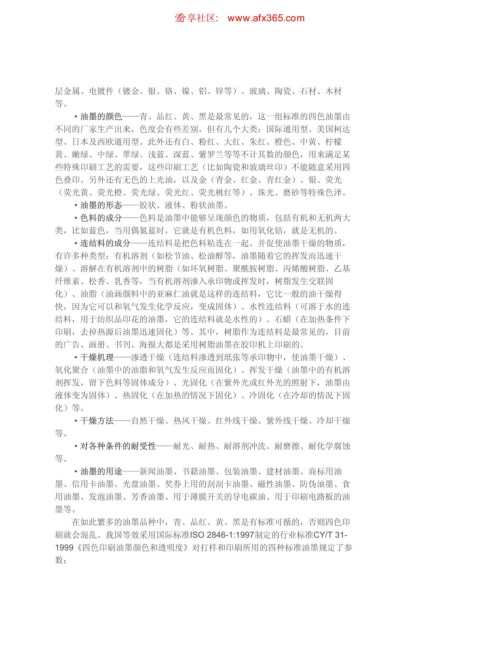 ·色料的成分——色料是油墨中能够呈现颜色的物质,包括有机和无机两大
