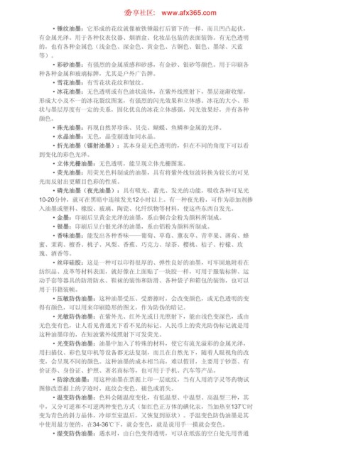 ·冰花油墨:无色透明或有色油状流体,在紫外线照射下,墨层逐渐收缩,