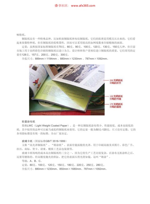 纸,其中较厚的品种可以被当成低档铜版纸来使用。它的定量一般为50克-120克,尺寸没有定数,它的