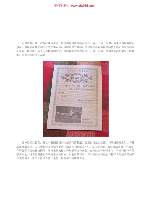 外地好。特种纸不适于印刷精细的图文,但简约的效果有时更好,另一方面,单调的版面如果采用特种