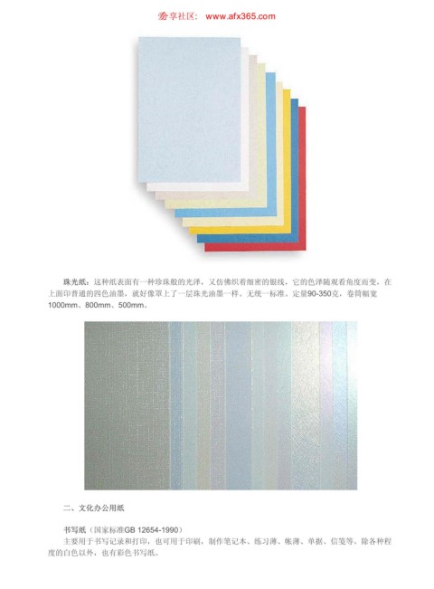 上面印普通的四色油墨,就好像罩上了一层珠光油墨一样。无统一标准。定量90-350克,卷筒幅宽