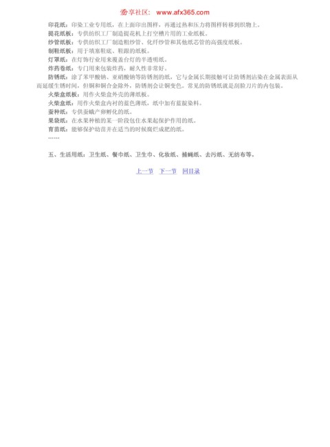 五、生活用纸:卫生纸、餐巾纸、卫生巾、化妆纸、捕蝇纸、去污纸、无纺布等。