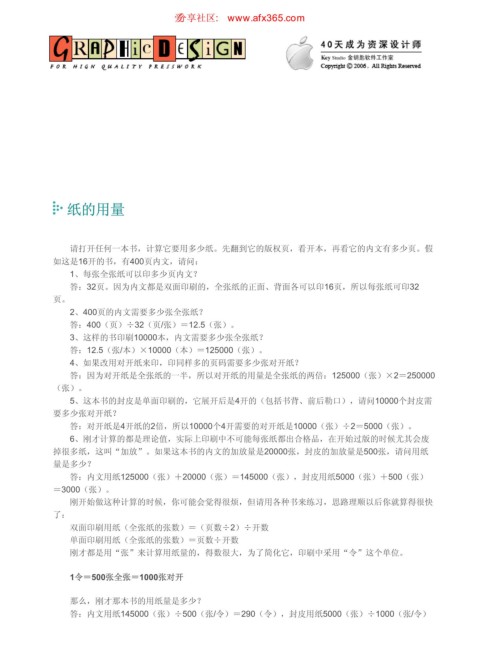 请打开任何一本书,计算它要用多少纸。先翻到它的版权页,看开本,再看它的内文有多少页。假