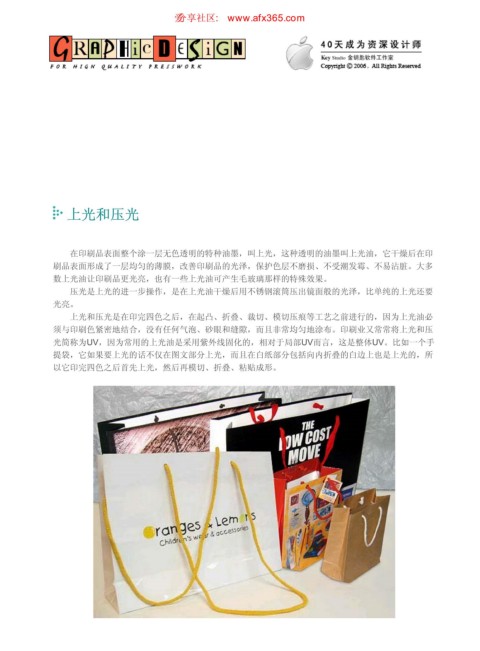 提袋,它如果要上光的话不仅在图文部分上光,而且在白纸部分包括向内折叠的白边上也是上光的,所