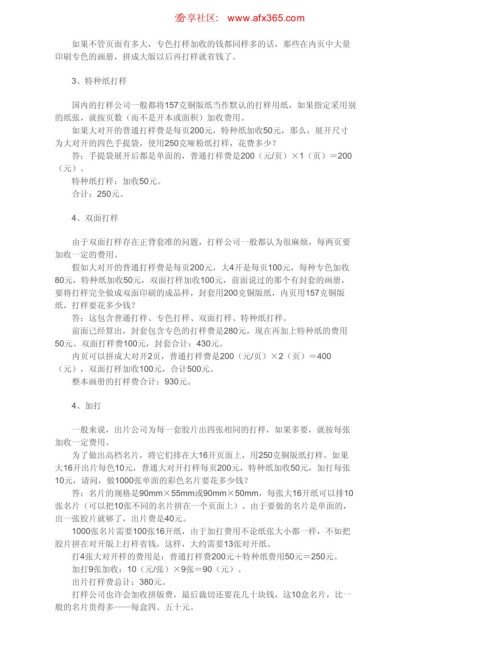 假如大对开的普通打样费是每页200元,大4开是每页100元,每种专色加收