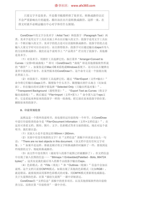 类。美术字是用文字工具在页面上单击以后输入的文字,段落字是用文字工具拉