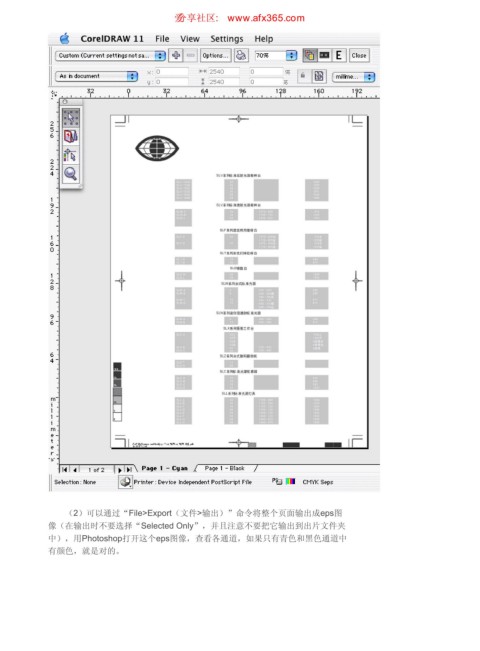 无出血单页 ιٳཚഠ XXX BGY DPN 页码,10/11 (2)可以通过“File>Export(文件>输出)”命令将整个页面输出成eps图 像(在输出时不要选择“Selected Only”,并且注意不要把它输出到出片文件夹 中),用Photoshop打开这个eps图像,查看各通道,如果只有青色和黑色通道中 有颜色,就是对的。 https://www.antssoft.com/11-1.htm 2009-5-9