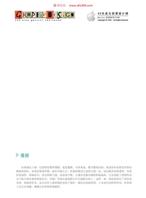 磨损的部位,如果需要保护膜,就在印刷之后、折叠和裁切之前给它裱一层,这层膜必须很透明,有很