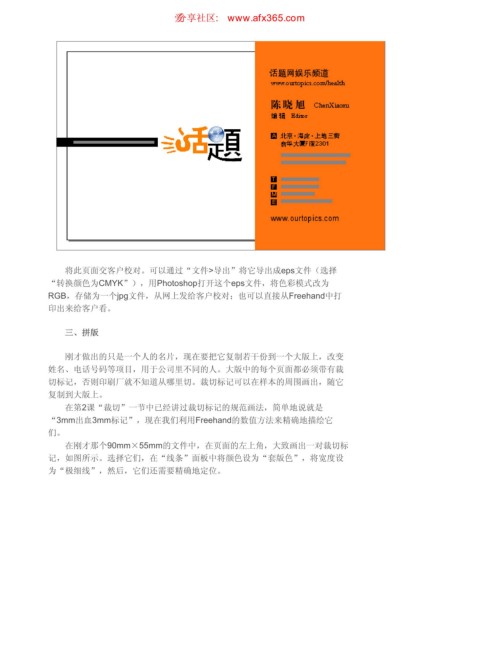 姓名、电话号码等项目,用于公司里不同的人。大版中的每个页面都必须带有裁