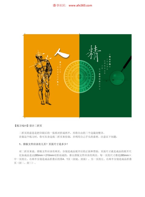 比如成品是由285mm×210mm对折而成的,那么排版文件应该有两页,每一页的尺寸都是285mm×2