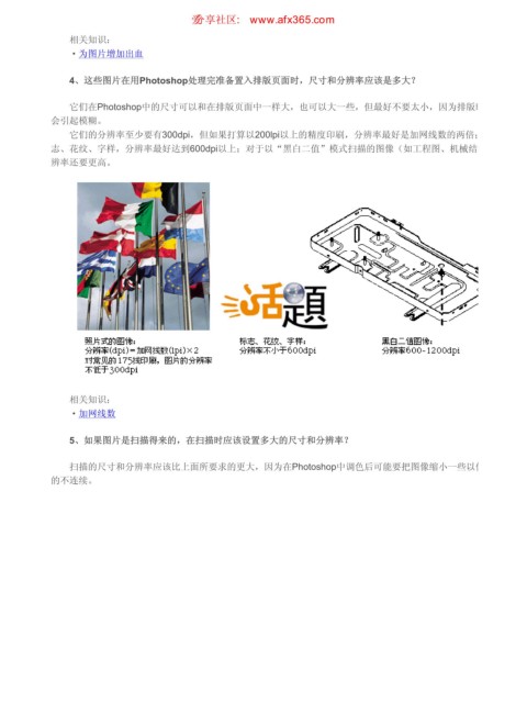 4、这些图片在用Photoshop处理完准备置入排版页面时,尺寸和分辨率应该是多大?