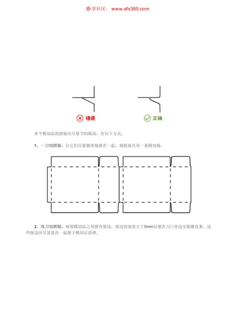 模切加工的特点 ιٳཚഠ XXX BGY DPN 页码,3/4 多个模切品的拼版应尽量节约版面,有以下方式: 1、一刀切拼版:让它们尽量紧密地排在一起,相接处共用一条模切线。 2、双刀切拼版:相邻模切品之间留有废边,废边的宽度大于5mm以便在刀口旁边安装橡皮条,这 些废边应尽量连在一起便于模切后清理。 https://www.antssoft.com/13-1.htm 2009-5-9