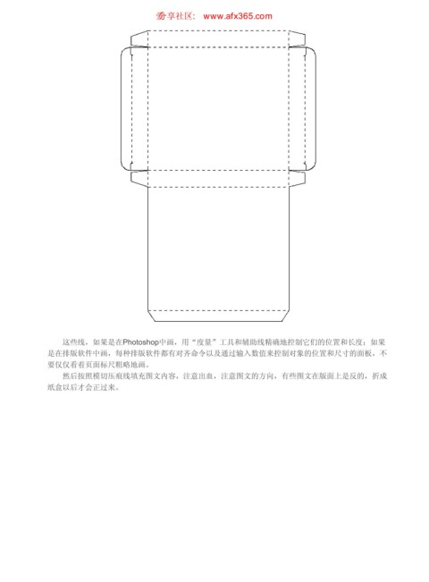 模切压痕品 ιٳཚഠ XXX BGY DPN 页码,8/10 这些线,如果是在Photoshop中画,用“度量”工具和辅助线精确地控制它们的位置和长度;如果 是在排版软件中画,每种排版软件都有对齐命令以及通过输入数值来控制对象的位置和尺寸的面板,不 要仅仅看着页面标尺粗略地画。 然后按照模切压痕线填充图文内容,注意出血,注意图文的方向,有些图文在版面上是反的,折成 纸盒以后才会正过来。 https://www.antssoft.com/13-3.htm 2009-5-9