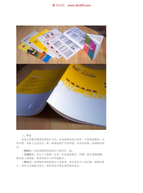 入,有时与无线胶订结合,铁丝穿过书背扎到书的里面去。