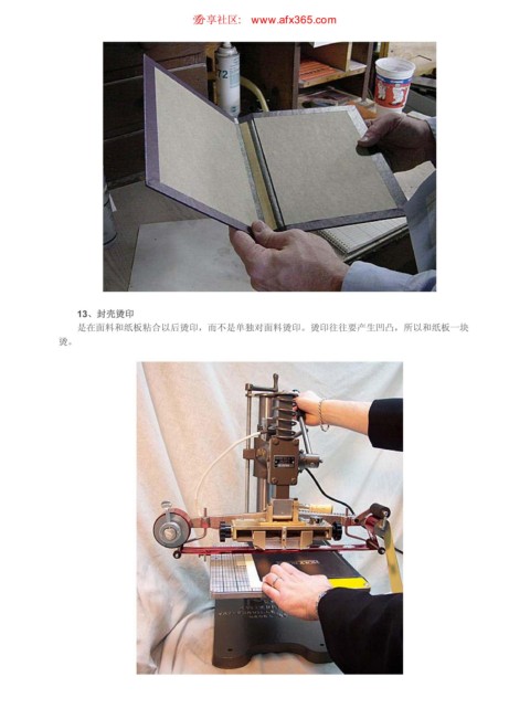 精装书的印后加工 ιٳཚഠ XXX BGY DPN 页码,4/7 13、封壳烫印 是在面料和纸板粘合以后烫印,而不是单独对面料烫印。烫印往往要产生凹凸,所以和纸板一块 烫。 https://www.antssoft.com/14-5.htm 2009-5-9