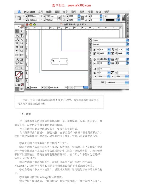 这一步要做的是把主要内容粗略地排一遍,调整字号、行距、版心大小、插