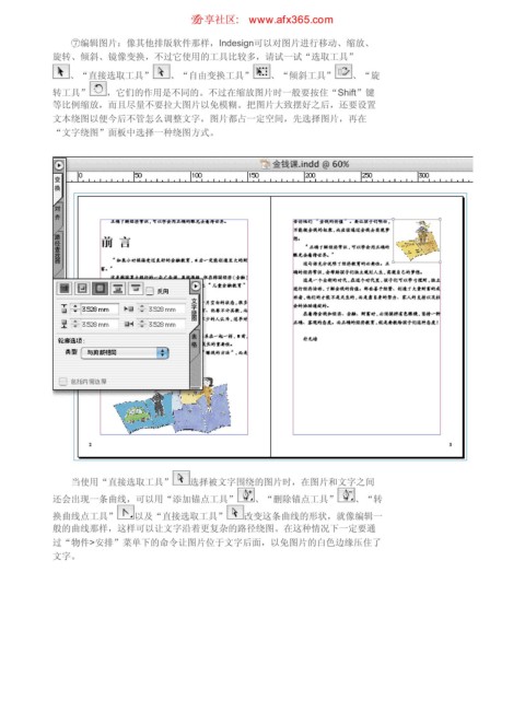 当使用“直接选取工具” 选择被文字围绕的图片时,在图片和文字之间