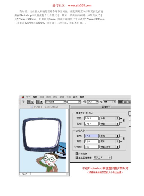 设计平装书 ιٳཚഠ XXX BGY DPN 页码,42/64 有时候,出血要从原稿处理那个环节开始做,在把图片置入排版页面之前就 要在Photoshop中设置成包含出血的尺寸。比如一张满页的底图,如果页面尺寸 是170mm×230mm,出血量是3mm,则这张底图的尺寸应该是173mm×236mm (并非是176mm×236mm,因为只有三边出血,折口不出血)。 https://www.antssoft.com/14-6.htm 2009-5-9