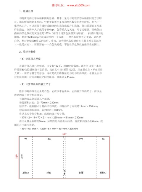②书背:根据刚才计算的书芯厚度,书背的尺寸应该是11mm×230mm;