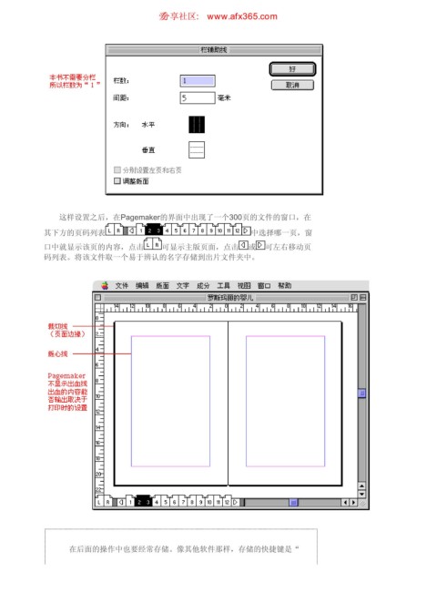 设计精装书 ιٳཚഠ XXX BGY DPN 页码,4/31 这样设置之后,在Pagemaker的界面中出现了一个300页的文件的窗口,在 其下方的页码列表 中选择哪一页,窗 口中就显示该页的内容,点击 可显示主版页面,点击 或 可左右移动页 码列表。将该文件取一个易于辨认的名字存储到出片文件夹中。 在后面的操作中也要经常存储。像其他软件那样,存储的快捷键是“ https://www.antssoft.com/14-7.htm 2009-5-9
