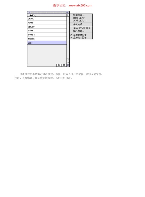设计精装书 ιٳཚഠ XXX BGY DPN 页码,8/31 双击排式的名称即可修改排式。选择一种适合出片的字体,初步设置字号、 行距、首行缩进、排文禁则的参数,以后还可以改。 https://www.antssoft.com/14-7.htm 2009-5-9