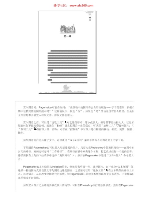 点、移动锚点,从而改变绕图路径的形状,但Pagemaker只能把文本绕图路径变为多边形,不能像Inde