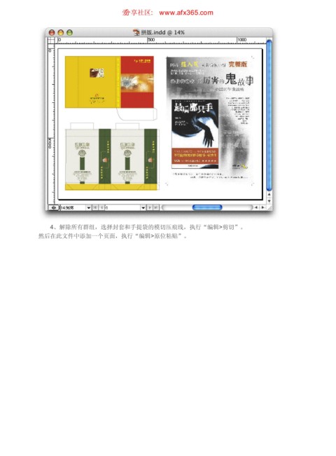 无折手拼版 ιٳཚഠ XXX BGY DPN 页码,4/5 4、解除所有群组,选择封套和手提袋的模切压痕线,执行“编辑>剪切”。 然后在此文件中添加一个页面,执行“编辑>原位粘贴”。 https://www.antssoft.com/15-2.htm 2009-5-9
