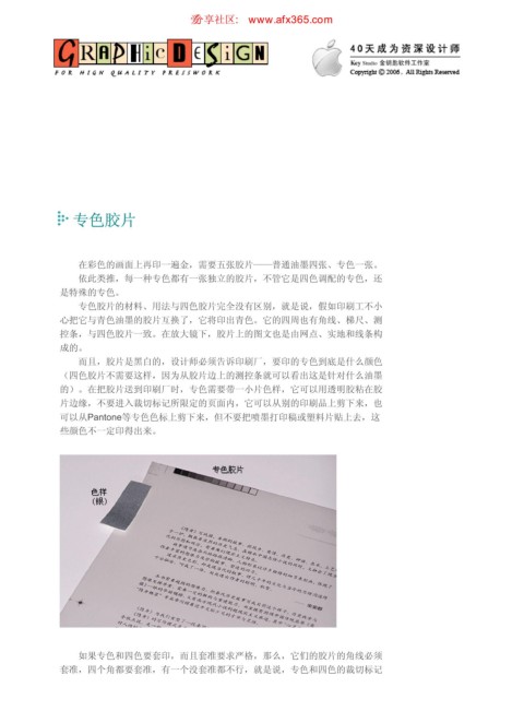 的)。在把胶片送到印刷厂时,专色需要带一小片色样,它可以用透明胶粘在胶
