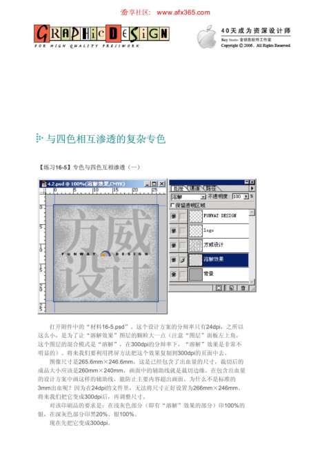对该印刷品的要求是:在浅灰色部分(即有“溶解”效果的部分)印100%的
