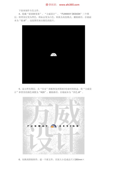 层,将背景层变为黑色,将标志变为白色。转换为灰度模式,删除路径,存储副