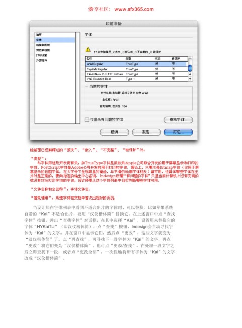 字体“HYKaiTiJ”(即汉仪楷体简),点“查找”按钮,Indesign会自动寻找字