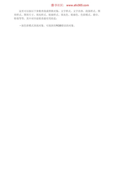 文件检查 ιٳཚഠ XXX BGY DPN 页码,38/42 这里可以按以下参数查找或替换对象:文字样式、文字内容、段落样式、图 形样式、图形尺寸、填充样式、轮廓样式、填充色、轮廓色、色彩模式、叠印、 特效等等。其中对印前检查最有用的是: ·按色彩模式查找对象,可找到有RGB错误的对象。 https://www.antssoft.com/17-3.htm 2009-5-9