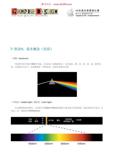 相,它投射在白屏上,形成像彩虹一样的色带,这条色带称为光谱。