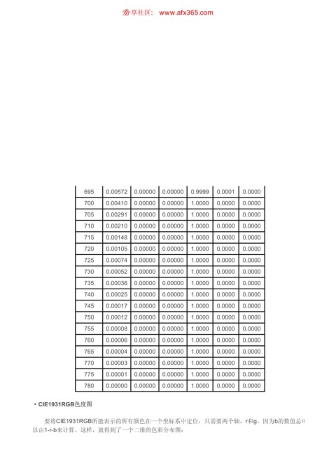 要将CIE1931RGB所能表示的所有颜色在一个坐标系中定位,只需要两个轴,r和g,因为b的数值总可