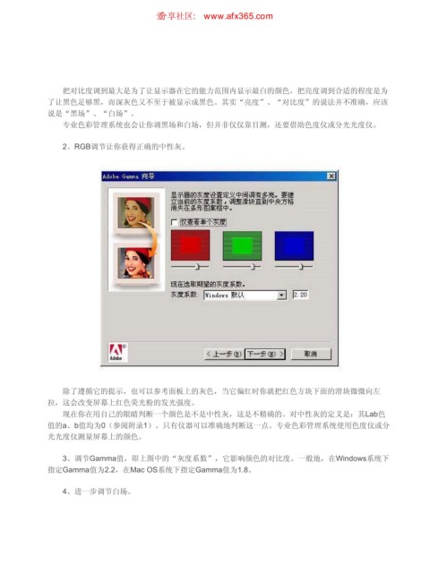 把对比度调到最大是为了让显示器在它的能力范围内显示最白的颜色,把亮度调到合适的程度是为