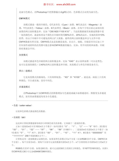 计算机是用二进制数据记录颜色的,如果某种色彩模式有x个分量(比如RGB有3个分量,CMYK有4