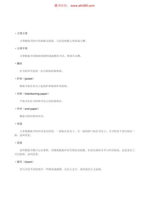 精装书套在封壳上起保护和装饰作用的纸。