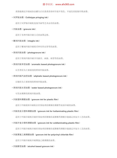 适用于照相凹版印刷书刊插页、画报、邮票等的油墨。