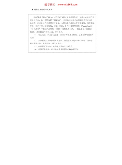 (2)在涂料纸(如铜版纸)上印刷,总墨量可高达320%-340%,因为涂